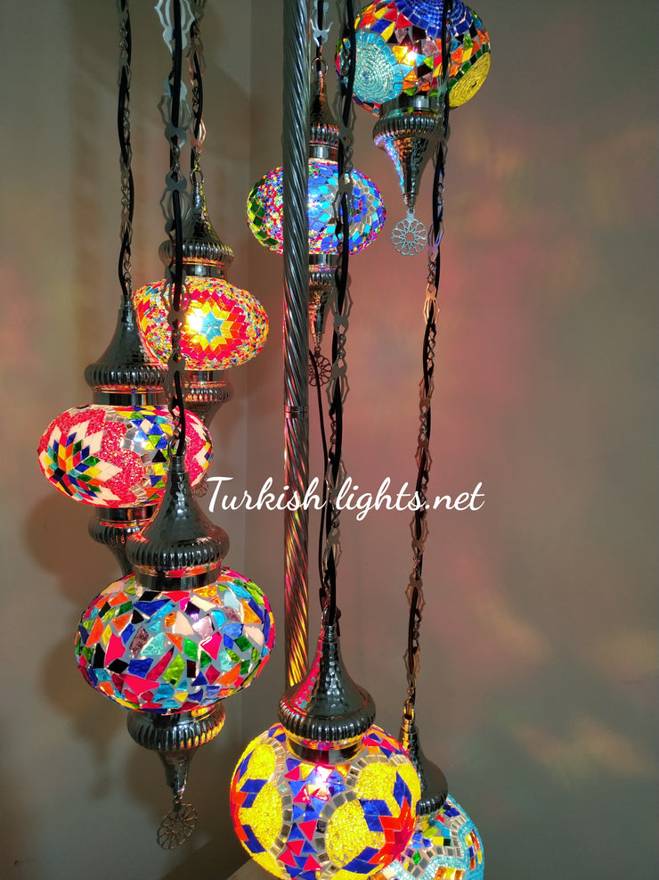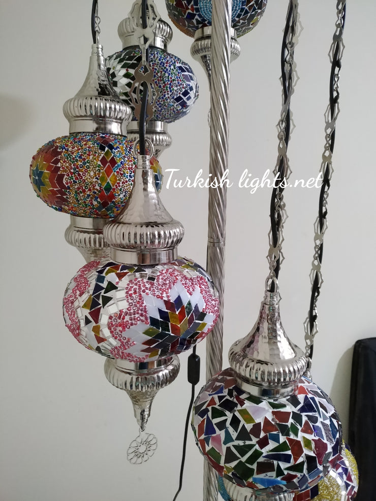TURKISH MOSAIC FLOOR  LAMP,  7  LARGE GLOBES,