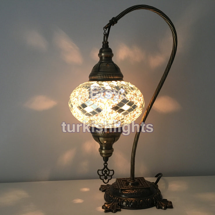 SWAN NECK MOSAIC TABLE LAMP, LARGE GLOBE - TurkishLights.NET